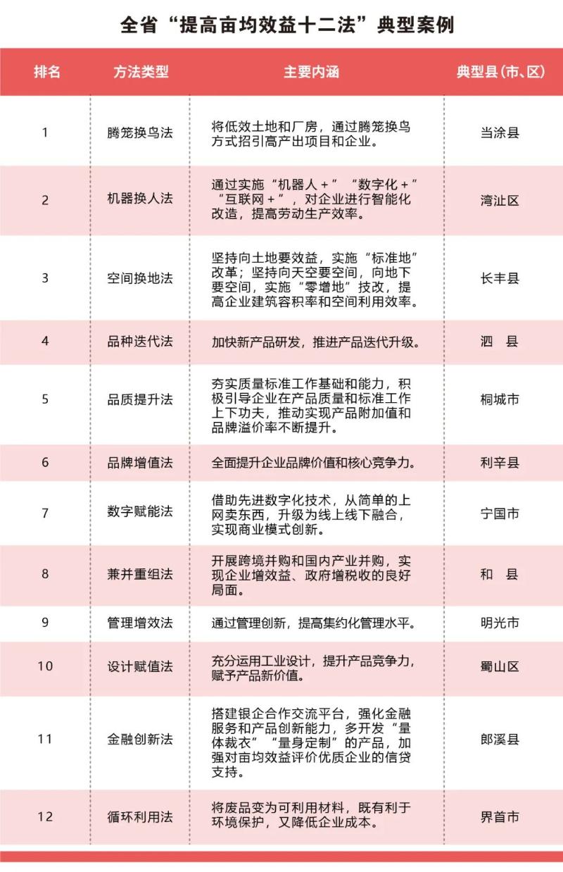 “五个一”的组合拳,安徽打的不仅有力度、有广度、有温度,更是打在了安徽亩均论英雄改革的靶点上。