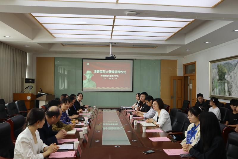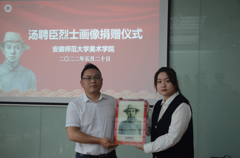 5月20日,在这个谐音“我爱你”的特别日子,安徽师范大学美术学院举办红杨镇籍烈士汤聘臣画像捐赠仪式。安徽师范大学美术学院、湾沚区退役军人事务局主要负责人,湾沚区红杨镇领导班子成员,汤聘臣烈士亲属等在活动现场共同见证了这次跨越时空的相见。