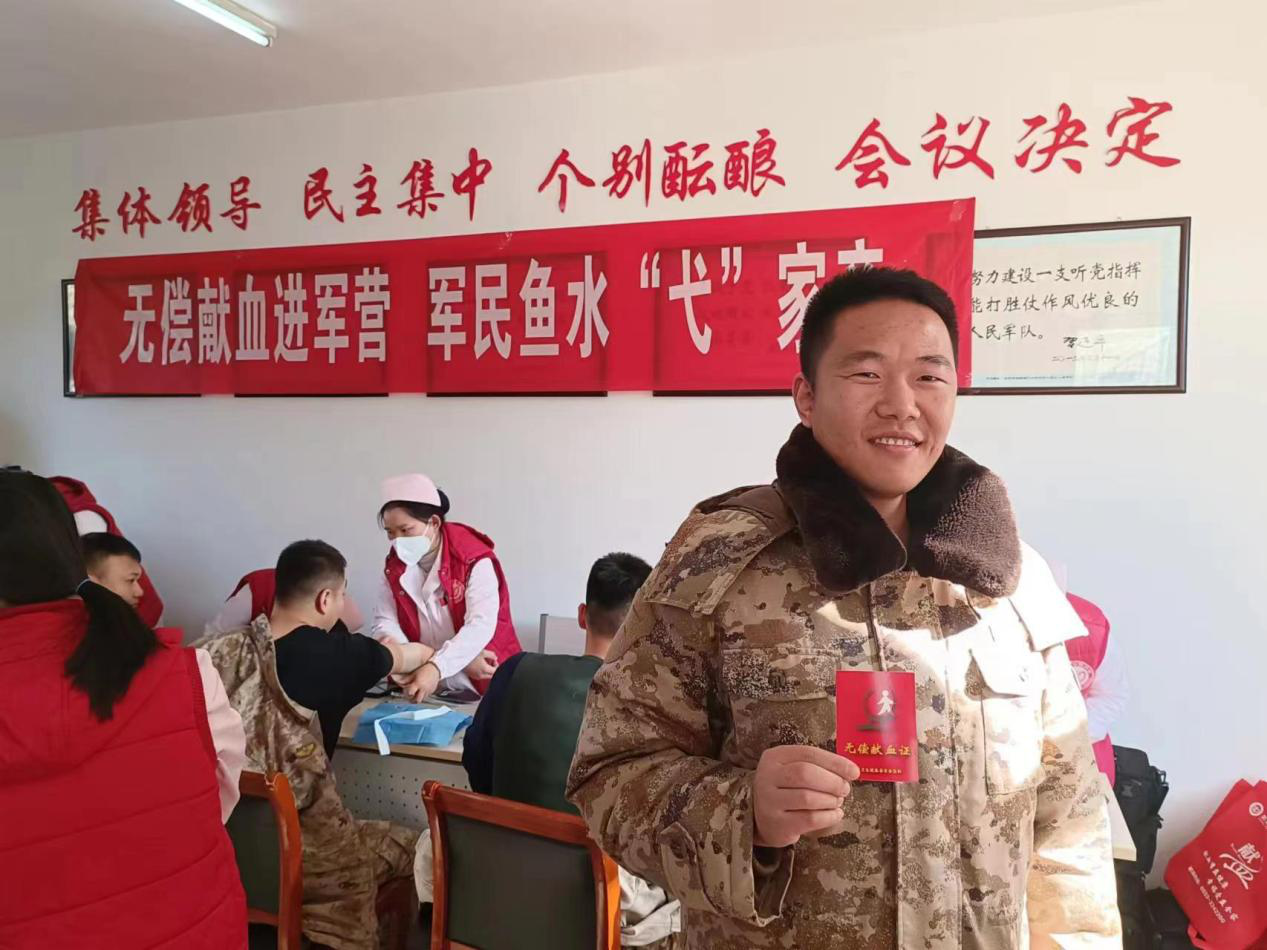 官兵在医生的指导下,有序做好登记表填写,身体指标检测等献血前工作。在献血队伍中,既有首次献血的“00后”列兵,也有入伍十多年、献血多次的班长骨干。献血无偿,大爱无疆,一滴滴鲜红赤诚的血液,闪烁着生命的希望,献出的是热血,传递的是爱心,凝聚的是战斗力。
