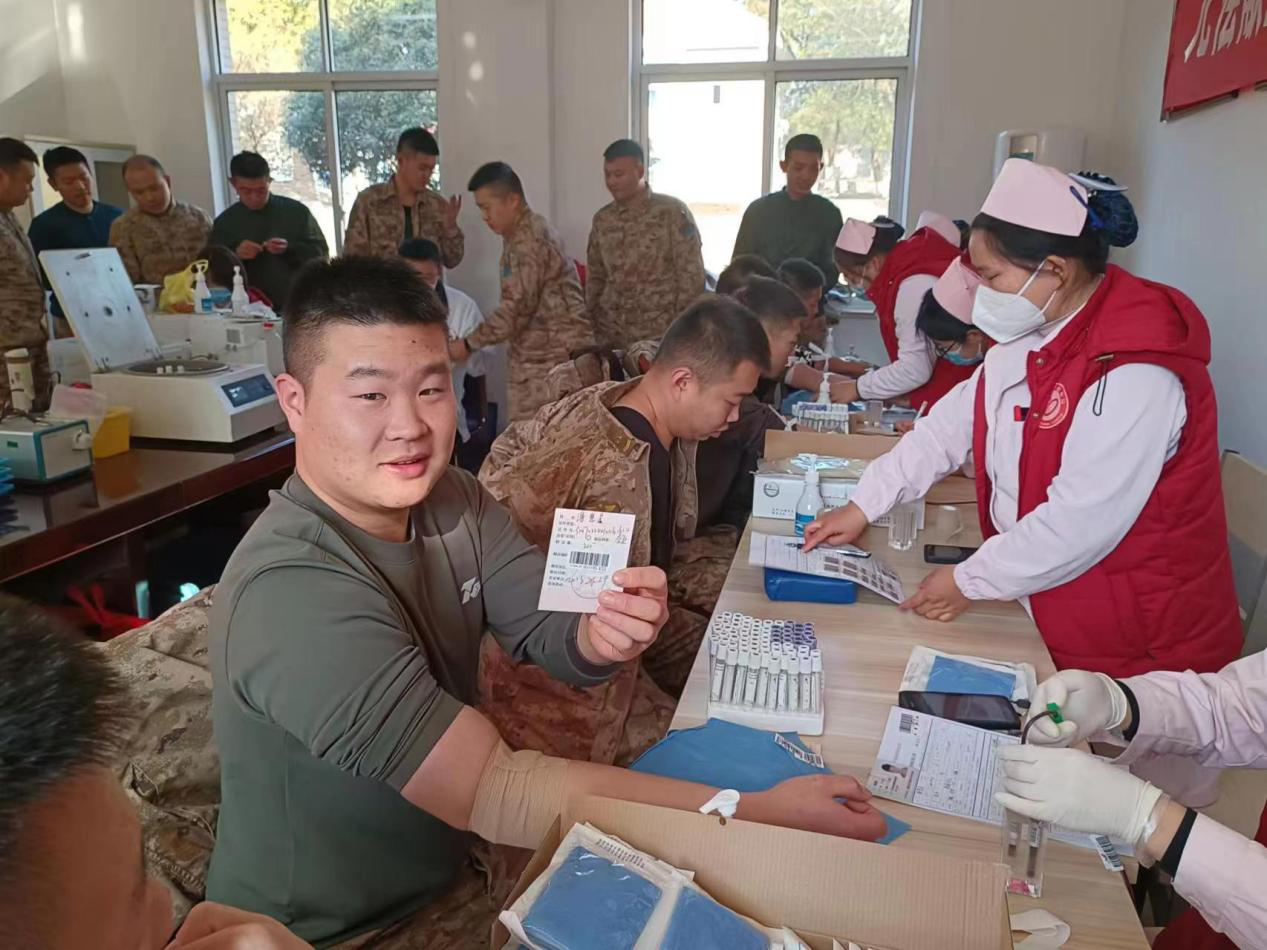 官兵在医生的指导下,有序做好登记表填写,身体指标检测等献血前工作。在献血队伍中,既有首次献血的“00后”列兵,也有入伍十多年、献血多次的班长骨干。献血无偿,大爱无疆,一滴滴鲜红赤诚的血液,闪烁着生命的希望,献出的是热血,传递的是爱心,凝聚的是战斗力。
