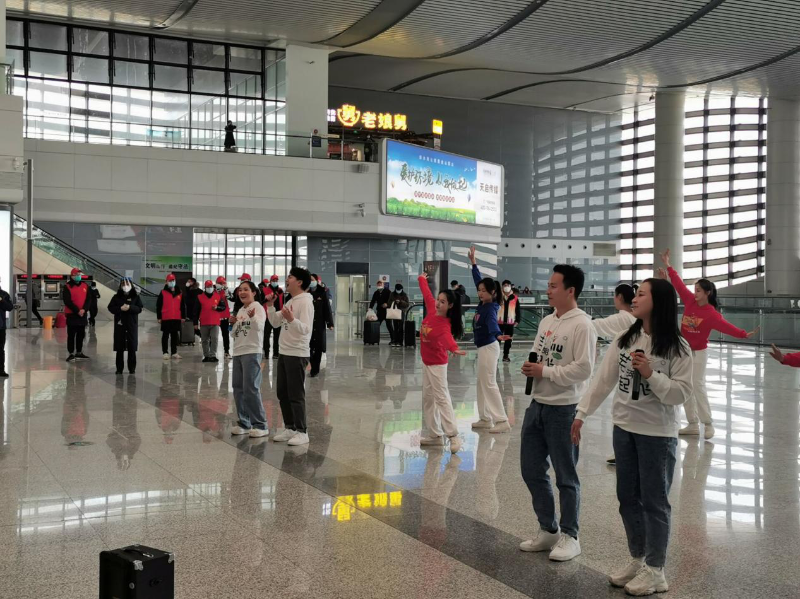 一副副现场书写、带着墨香的楹联,成为旅客们喜闻乐见的新春“伴手礼”,他们饶有兴致地找寻和品味其中的芜湖元素,带着对这座城市的依恋踏上归程,也把“欢乐芜湖”的城市形象广泛传播。同时,市文化馆的党员志愿者还为广大旅客朋友们献上“快闪”等艺术表演。